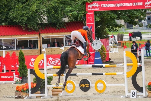 Jantien reed L met haar Satie. De dressuur kan nog wel wat beter, maar aldoende leert men. Ze sprong netjes foutloos en crosste ook foutloos. Hiermee werd ze 7e.