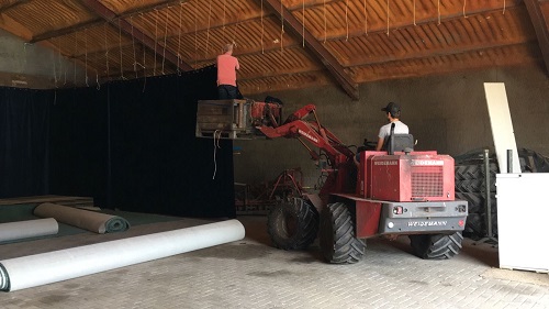 Dankzij de hulp van vele lieve mensen konden we dit thuis in de schuur doen. De trouwdag is 22 augustus maar dat is net na het EK, dus dat was niet handig.