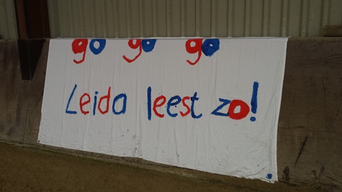Harry kwam stoer binnen en kreeg daar zelfs een 7 voor. Hij had goede dingen, maar ook mindere, hij was soms afgeleid door het lawaai van de wind. Na de keertwendingen had hij een beetje verzet toen hij moest aangalopperen. En in een galopappuyment wilde hij even niet. Toch was Alice tevreden over hem omdat hij verder goed ging. De galopwissels gaan nu in de ring goed en Alice kreeg daar zelfs een 7 voor. Al met al weer een leerzame morgen. Harry kreeg 201 punten.