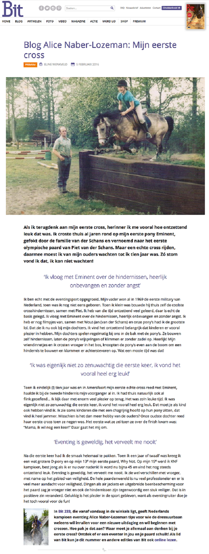 In het blad Bit stond een artikel over beginnen met crossen met medewerking van Alice geschreven door Eline Menkveld.